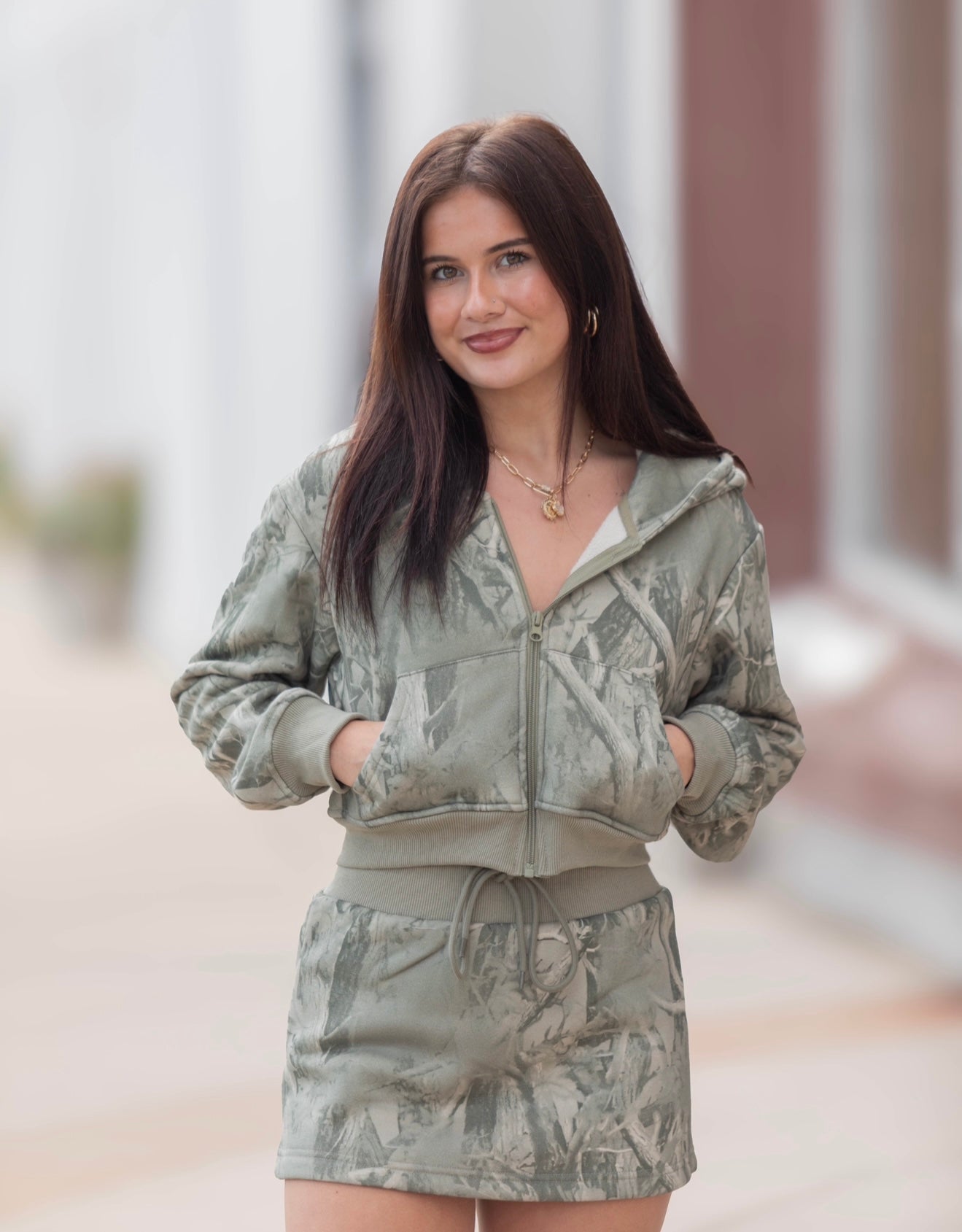 Camo Crush Skirt - Sage Camo Product form Model is 5’2 size 0-2 wearing a size XS $42.00 Size Size chart XS S M L Quantity Add to cart Free pickup in our shop(s)