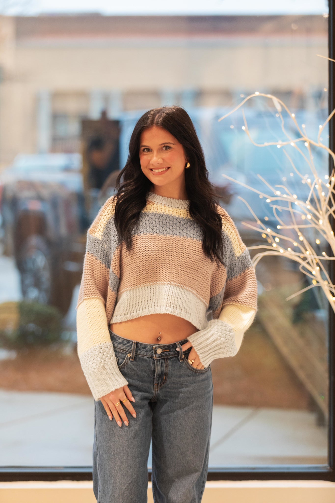 Clean Crush Crop Sweater - Blue/Multi Product form Model is 5’2 size 0-2 wearing a size small $42.00 Size Size chart XS S M L Quantity Add to cart Free pickup in our shop(s)