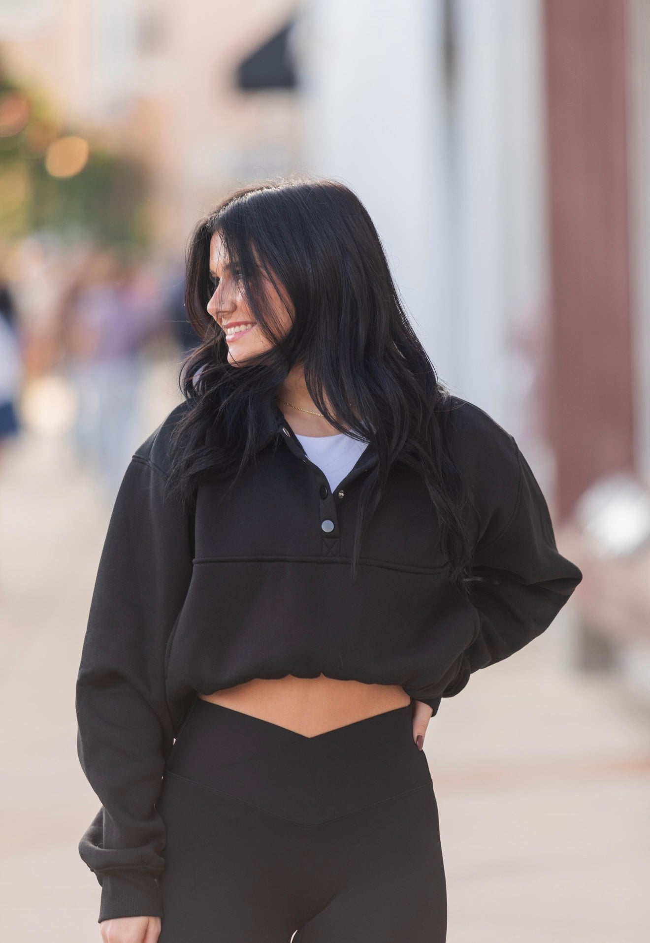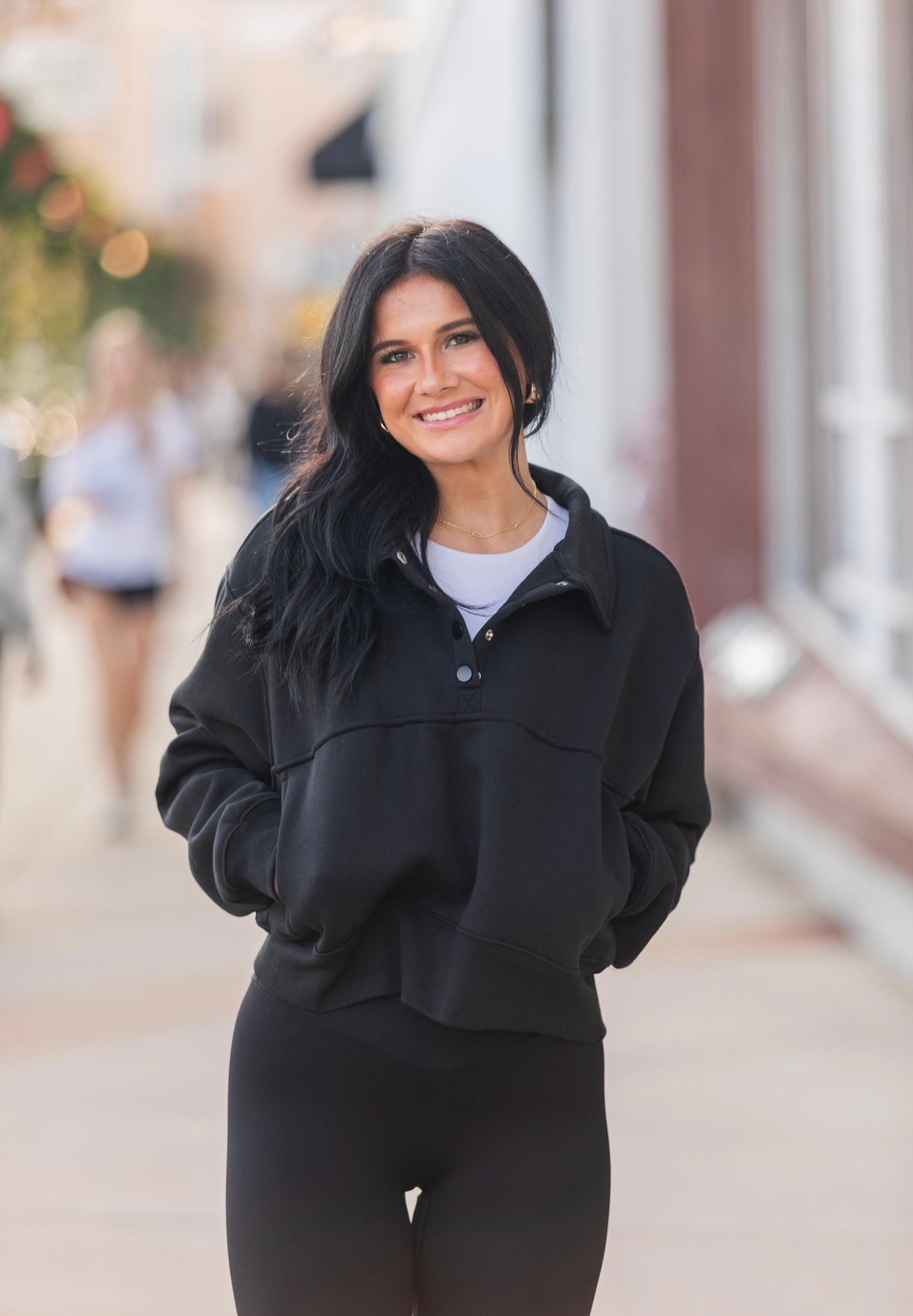 Coal Cozy Half Zip - Black Product form Model is 5’2 size 0-2 wearing a size small $25.00 Size Size chart small medium large Quantity Add to cart Free pickup in our shop(s)