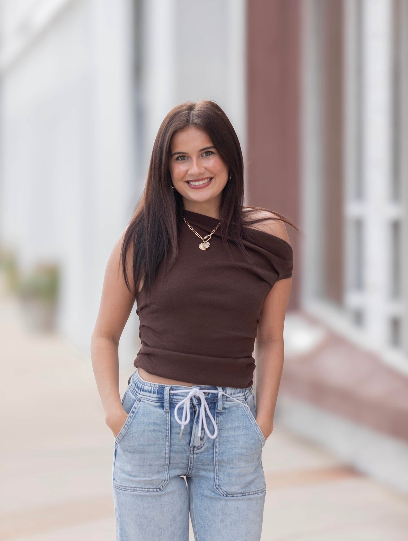 Espresso Edge Top - Brown Product form Model is 5’2 size 0-2 wearing a size small $32.00 Size Size chart XS S M L Quantity Add to cart Free pickup in our shop(s)