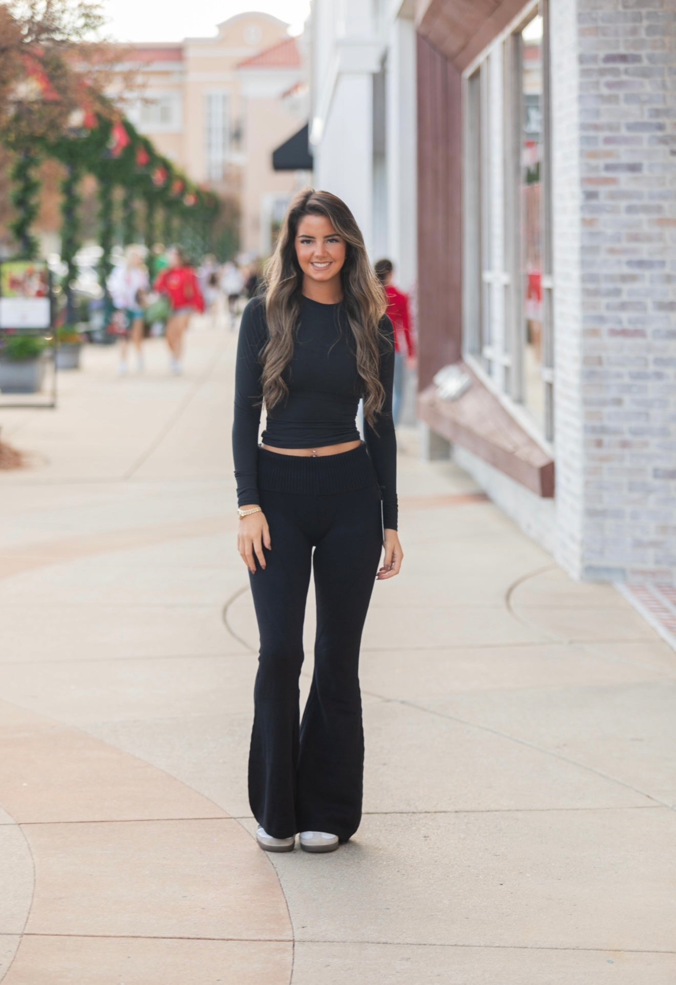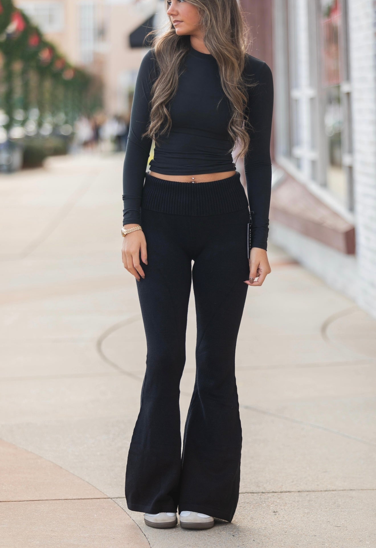 Foldover Flare Knit Sweater Pants - Black Product form Model is 5’7 size 2-4 wearing a size small $40.00 Size Size chart small medium large Quantity Add to cart Free pickup in our shop(s)