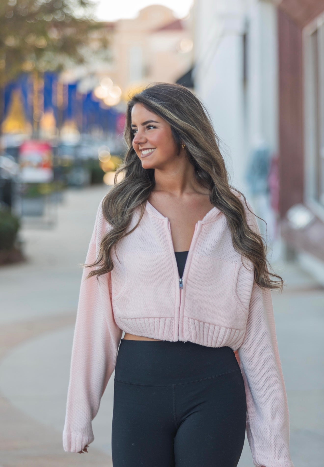 Knit Zip Up Hoodie - Pink Product form model 5’7 size 2-4 wearing a size small $46.00 Size Size chart S M L Quantity Add to cart Free pickup in our shop(s)