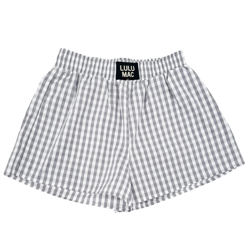 Out of stock Lulu Mac Gingham Boxer Shorts - Grey Product form $23.00 Size Size chart XS M Quantity Out of stock Free pickup in our shop(s)