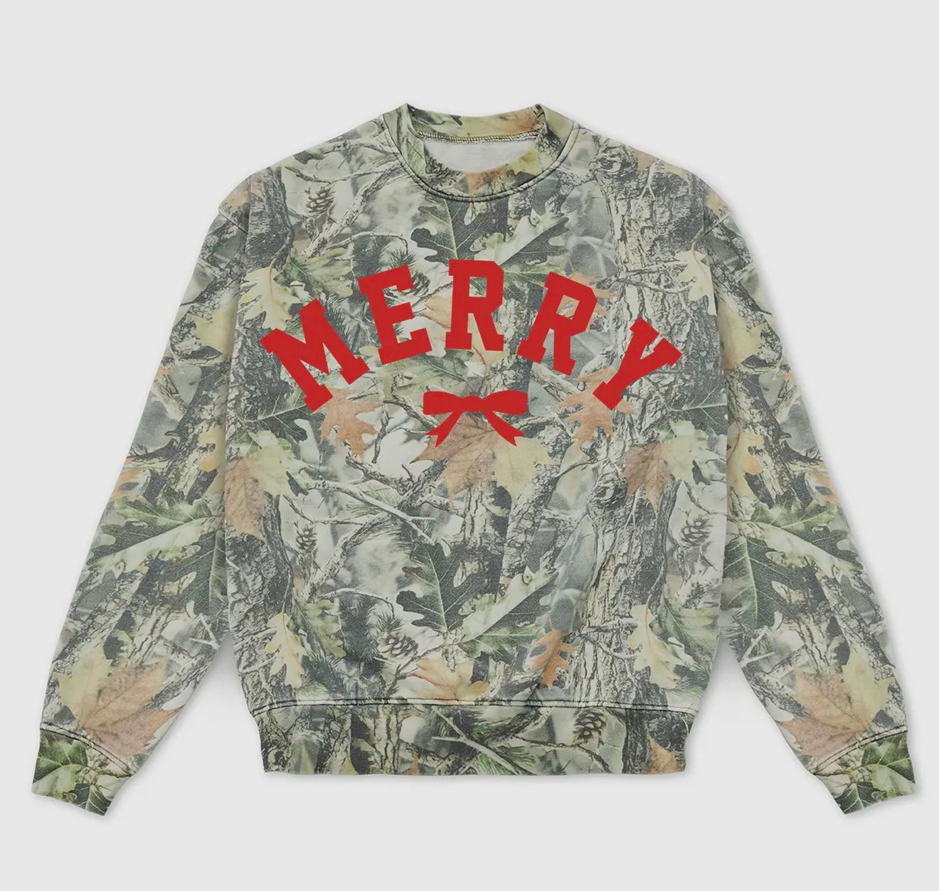 Merry Bow Camo Holiday Sweatshirt Product form $72.00 Size Size chart S M L XL 2XL Quantity Add to cart Free pickup in our shop(s)
