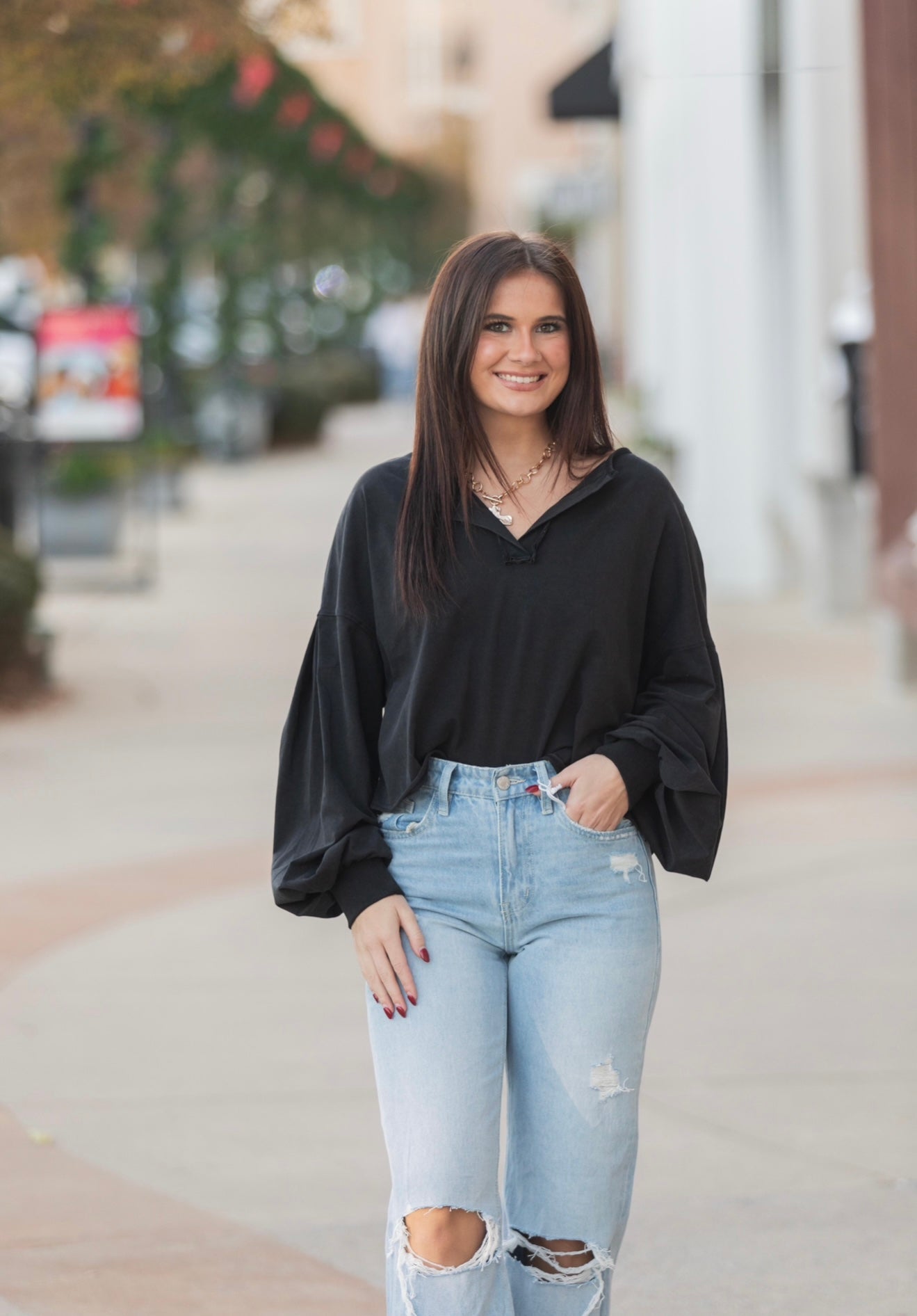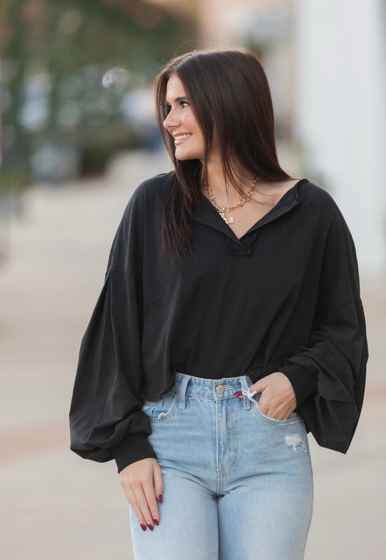 Mineral Washed Long Sleeve - Black Product form Model is 5’2 size 0-2 wearing a size small $25.00 Size Size chart small medium large Quantity Add to cart Free pickup in our shop(s)