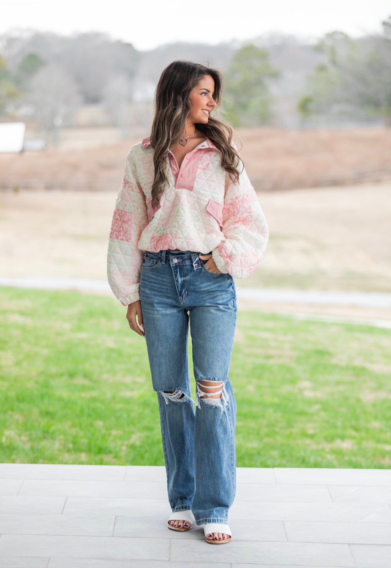 Pink Patchwork Sweater - Pink/White Product form Model is 5’7 size 2-4 wearing a size small $46.00 Size Size chart S M L Quantity Add to cart Free pickup in our shop(s)