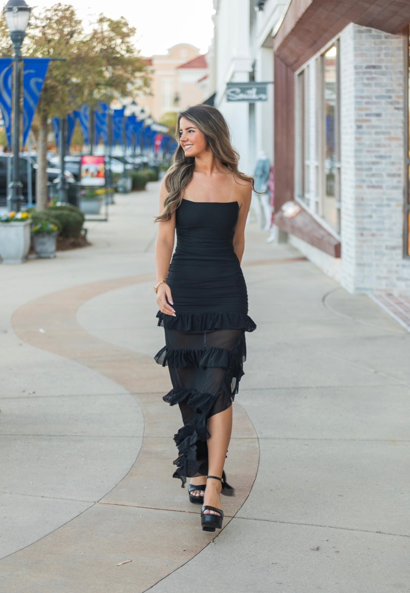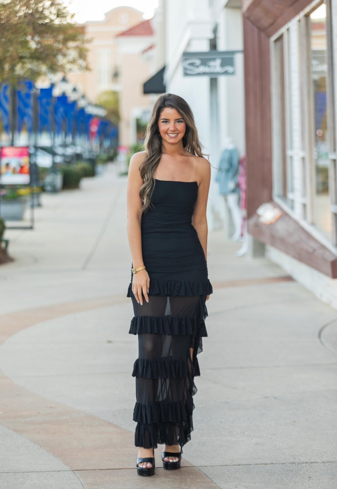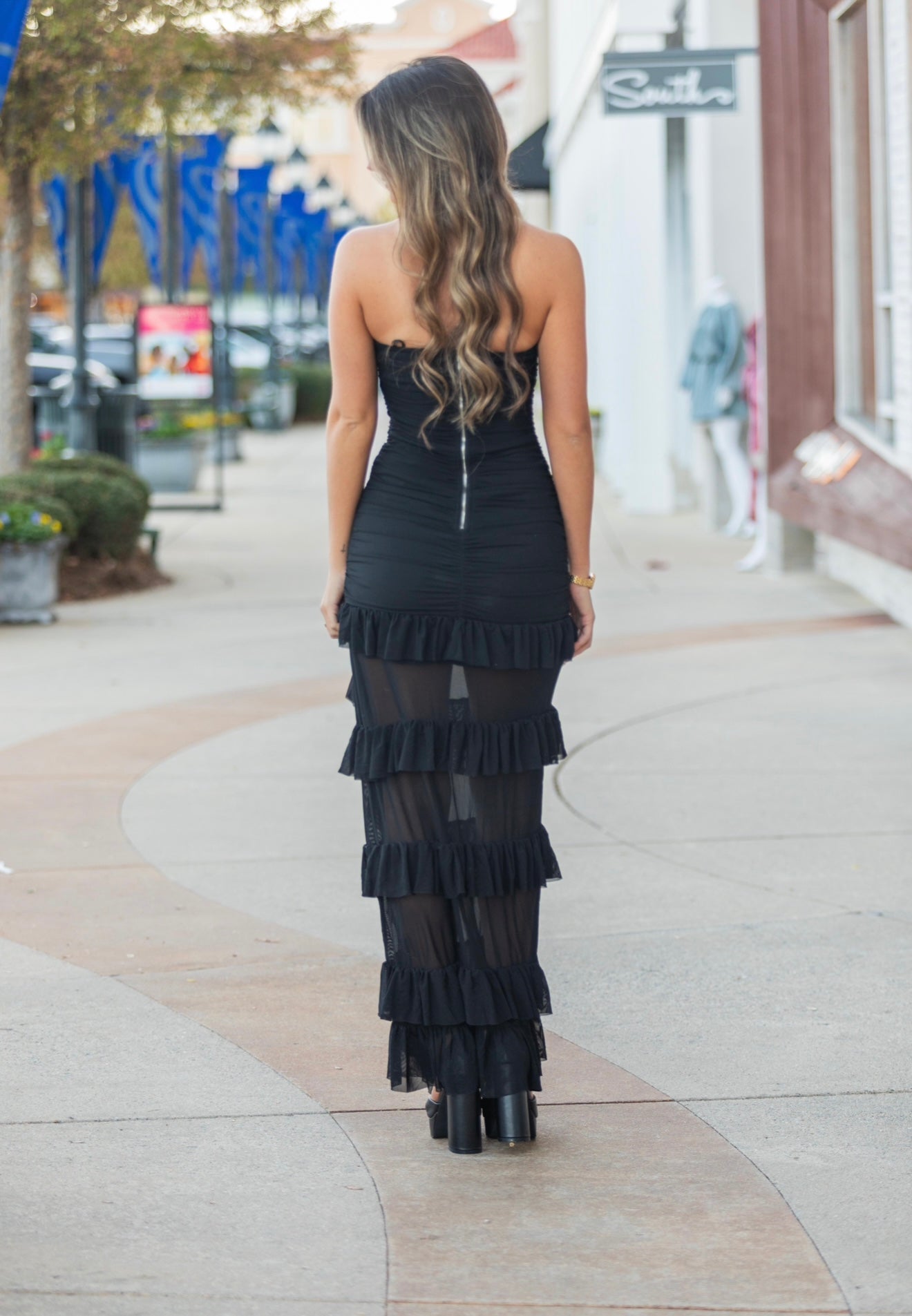 Ruffle Maxi Corset Dress - Black Product form Model is 5’7 size 2-4 wearing a small $56.00 Size Size chart S M L Quantity Add to cart Free pickup in our shop(s)