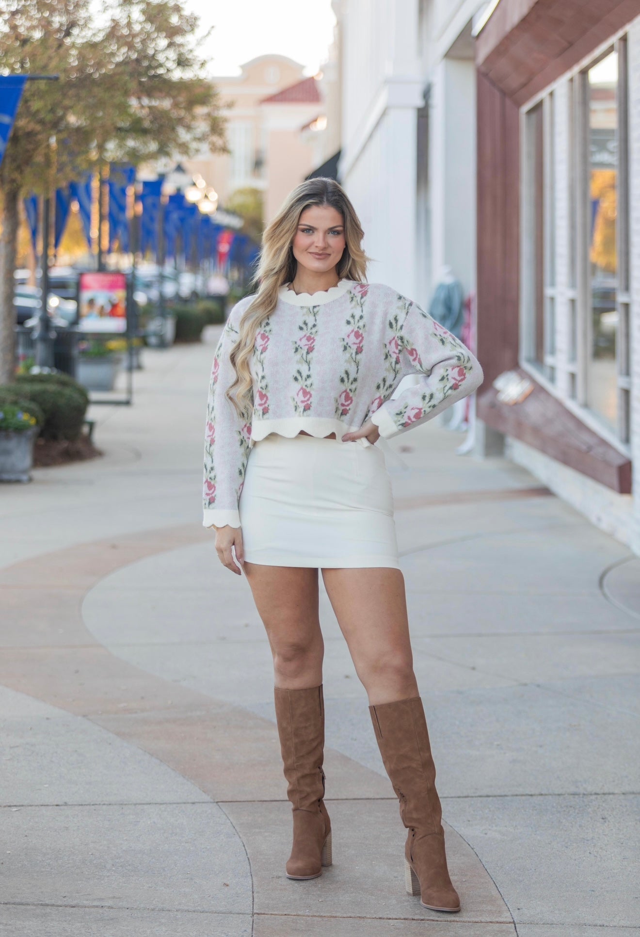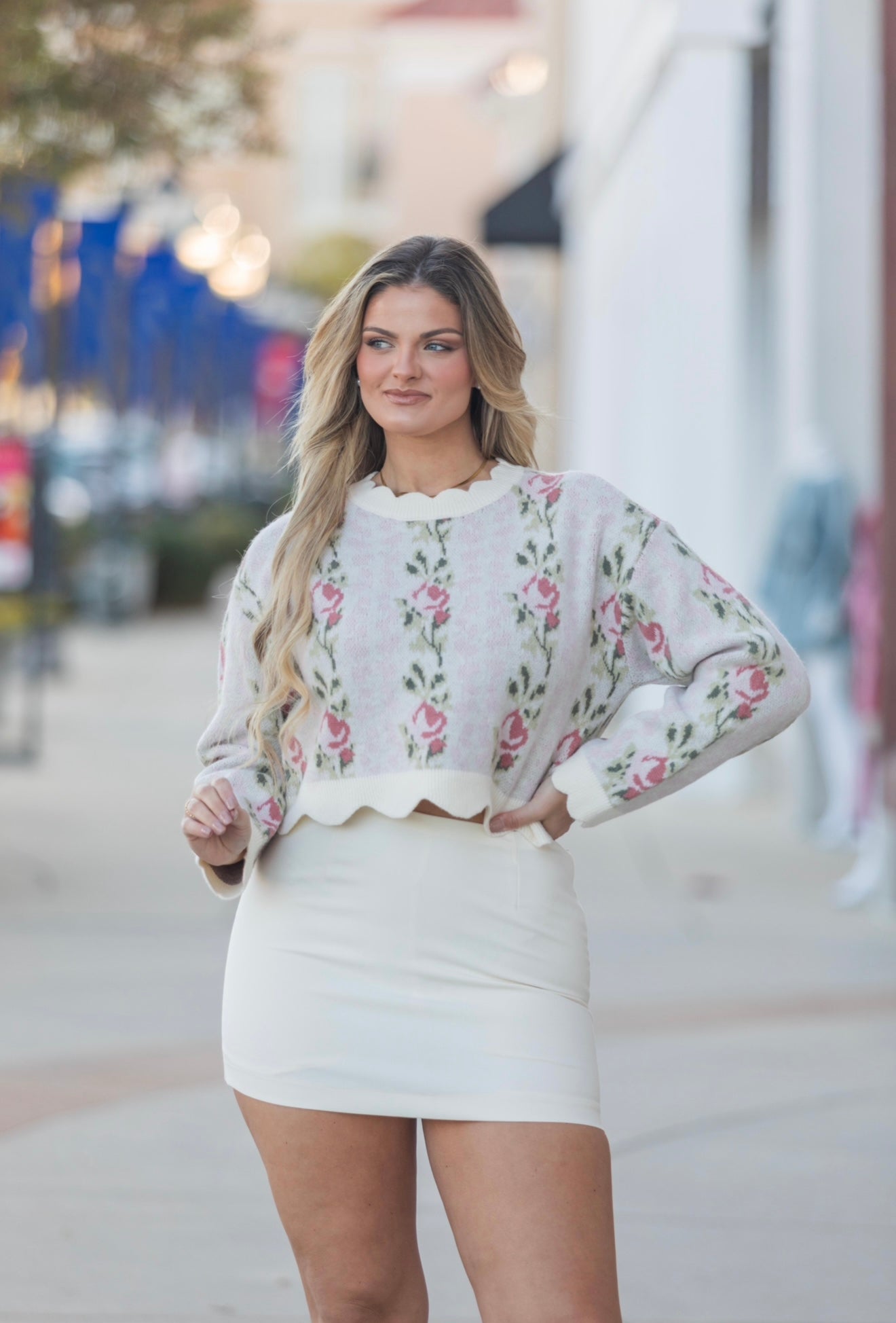 Scallop Hemline Sweater Top - pink Product form Model is 5’9 size 2-4 wearing a size medium $52.00 Size Size chart Small medium large Quantity Add to cart Free pickup in our shop(s)