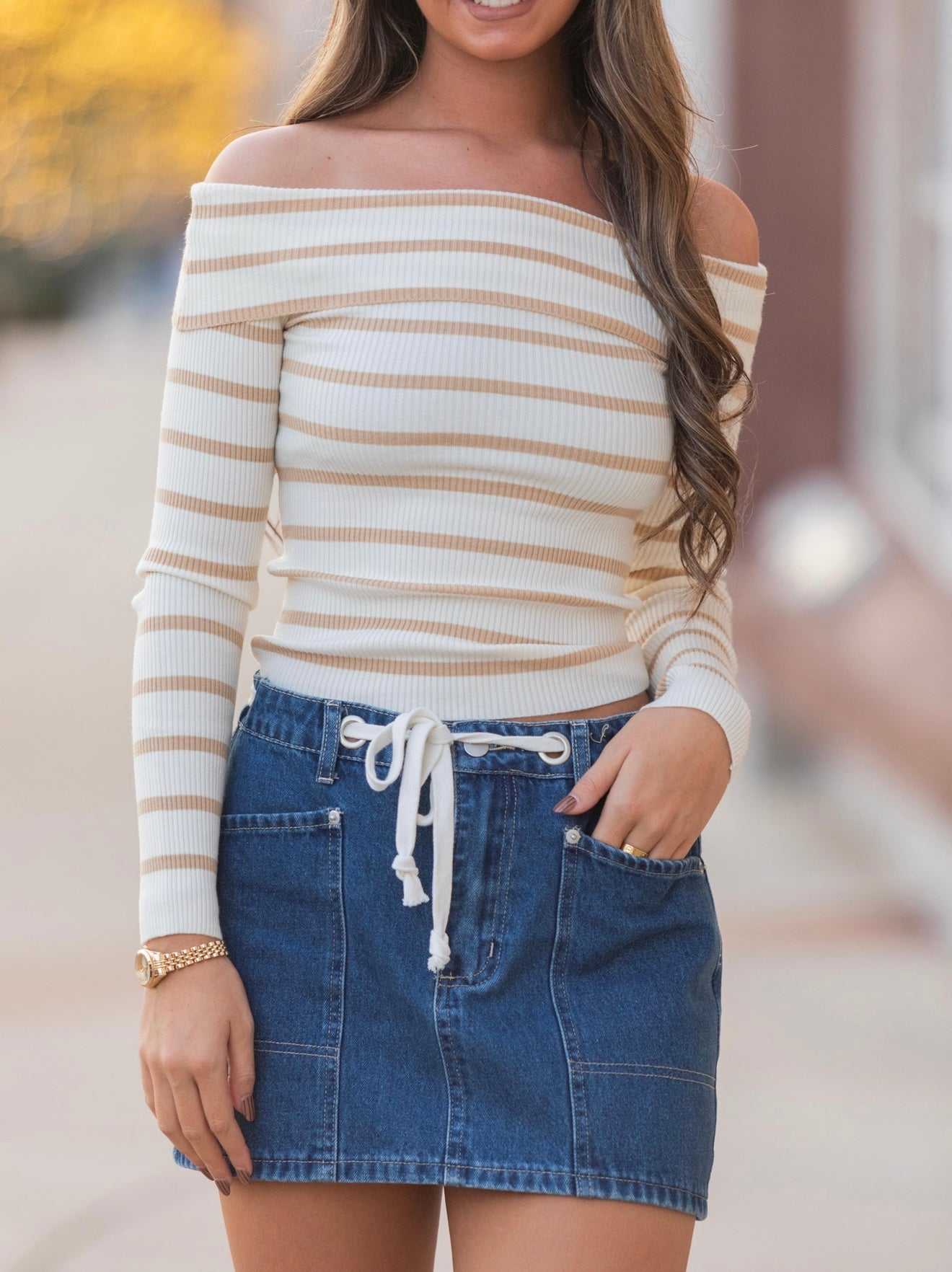 Shoulder Slip Stripe Top - Cream/Taupe Product form Model is 5’7 size 2-4 wearing a size small $20.00 Size Size chart small medium large Quantity Add to cart Free pickup in our shop(s)