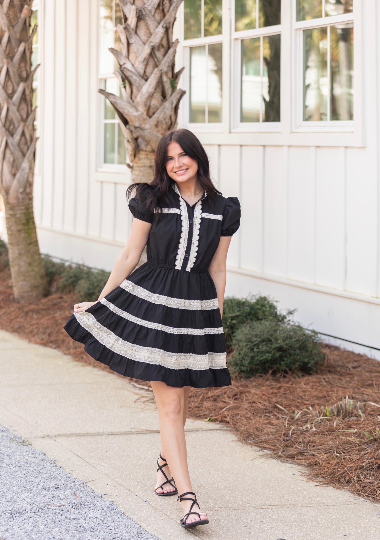 Simple Grace Button Down Dress - Black/Cream Product form Model is 5’2 size 0-2 wearing a size small $70.00 Size Size chart S M L Quantity Add to cart Free pickup in our shop(s)