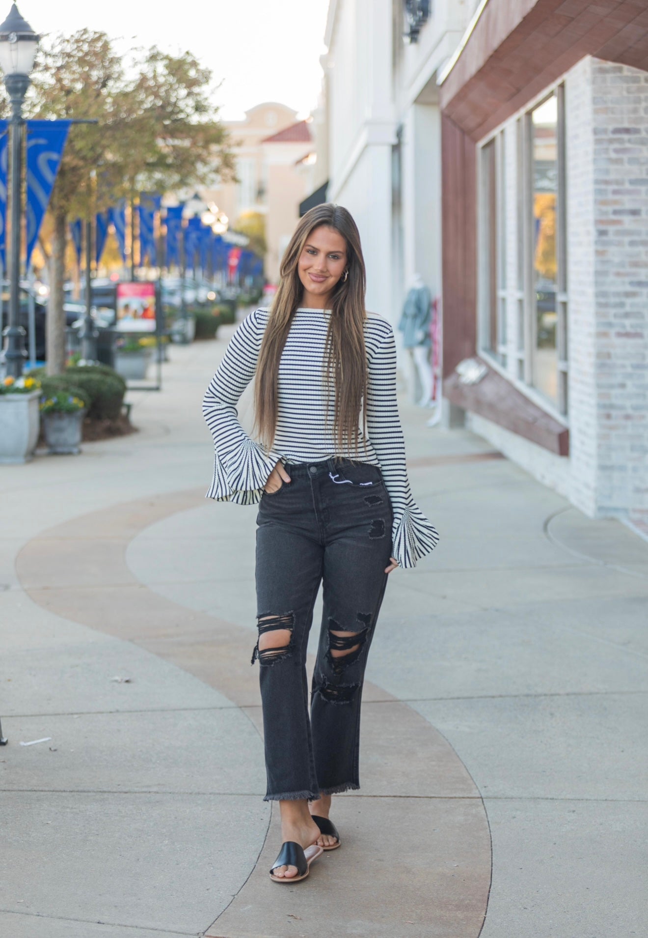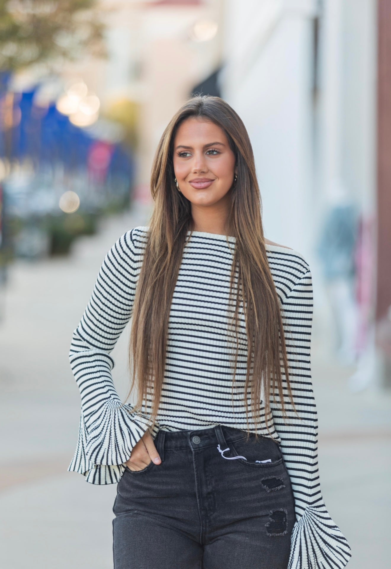 Stripe and Statement Sweater - Black/White Product form Model is 5’10 size 0-2 wearing a size small $66.00 Size Size chart S M L Quantity Add to cart Free pickup in our shop(s)