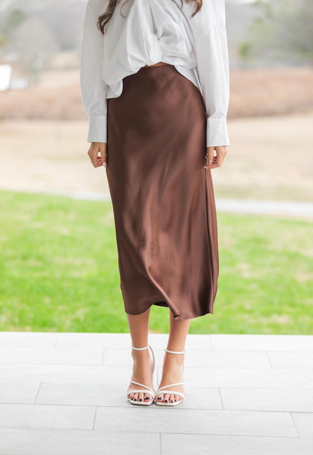 The Celeste Midi Skirt - Chocolate Product form Model is 5’7 size 2-4 wearing a size small $24.00 Size Size chart small medium large Quantity Add to cart Free pickup in our shop(s)