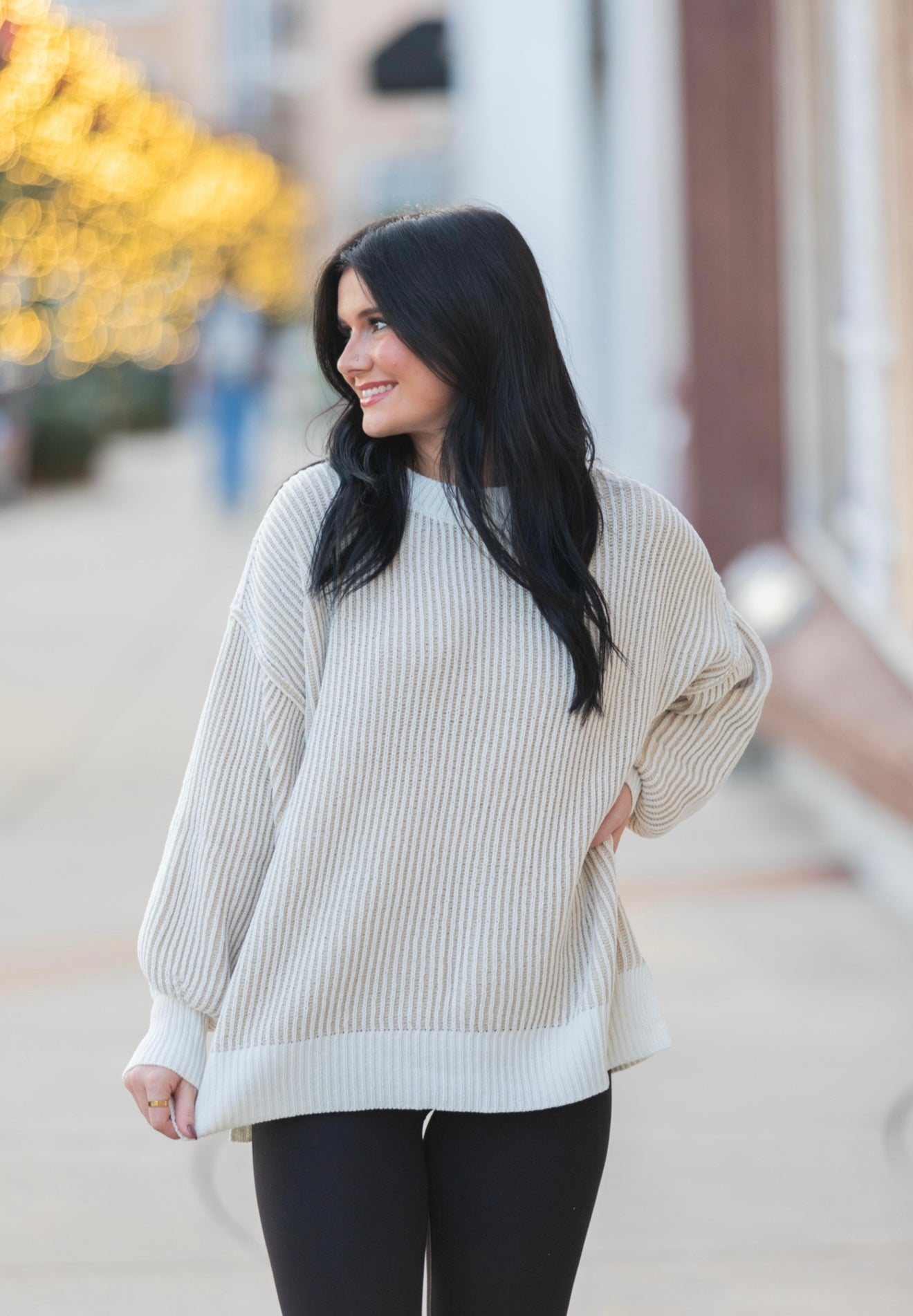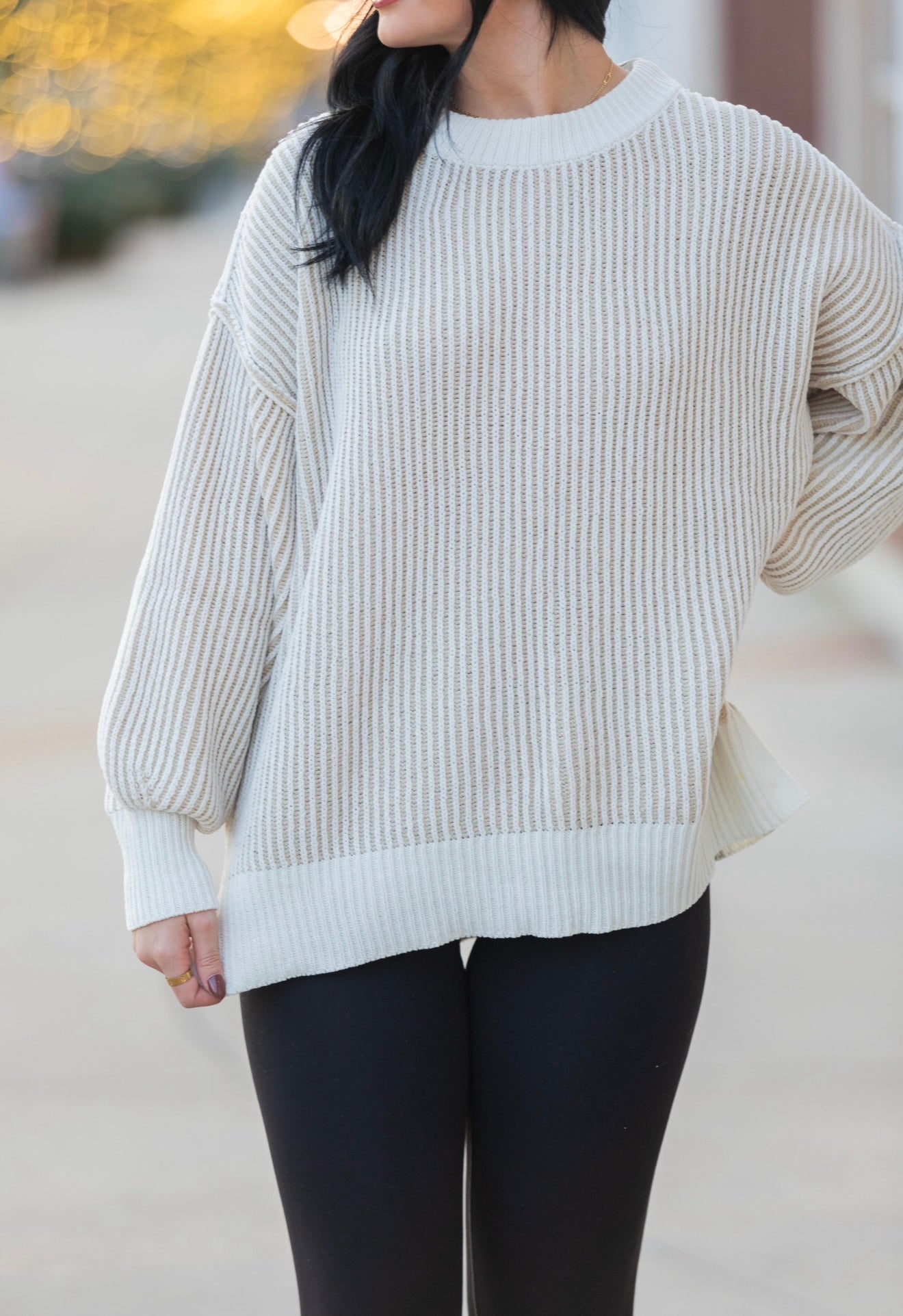 The Cozy Classic Sweater - White/Beige Product form Model is 5’2 size 0-2 wearing a size small $50.00 Size Size chart small medium large Quantity Add to cart Free pickup in our shop(s)